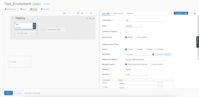 The CodeStream pipeline, is really simple. It just uses blueprints, I already have and uses, in Cloud Assembly.